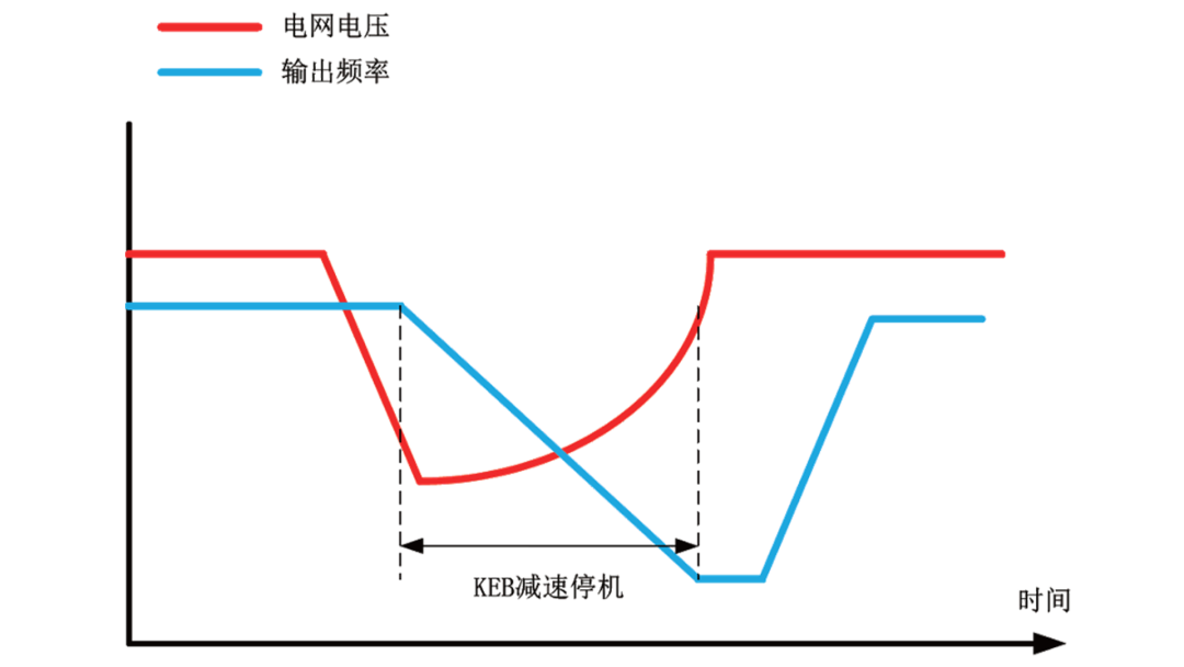 電網(wǎng)瞬間掉電時,變頻器受控減速,減少因電網(wǎng)瞬間掉電,造成的生產(chǎn)中斷。