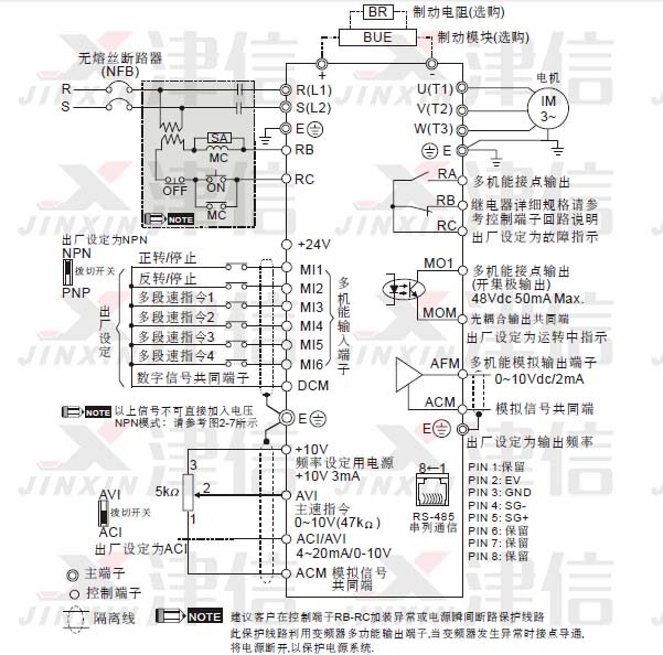l 為了安全和減少噪聲,230V 系列采用第三種接地(E ),460V 系列采用特種