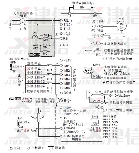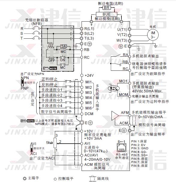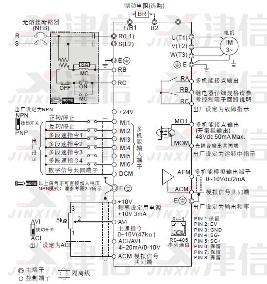 l 主回路配線與控制回路的配線必需隔離,以防止發生誤操作。