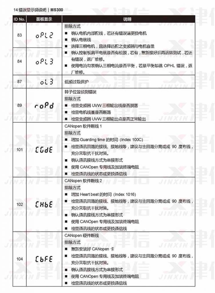 八、臺達MS300變頻器OPL2,OPL3,OL3,ROPD,CHbE,cbfe,CGDE故障代碼