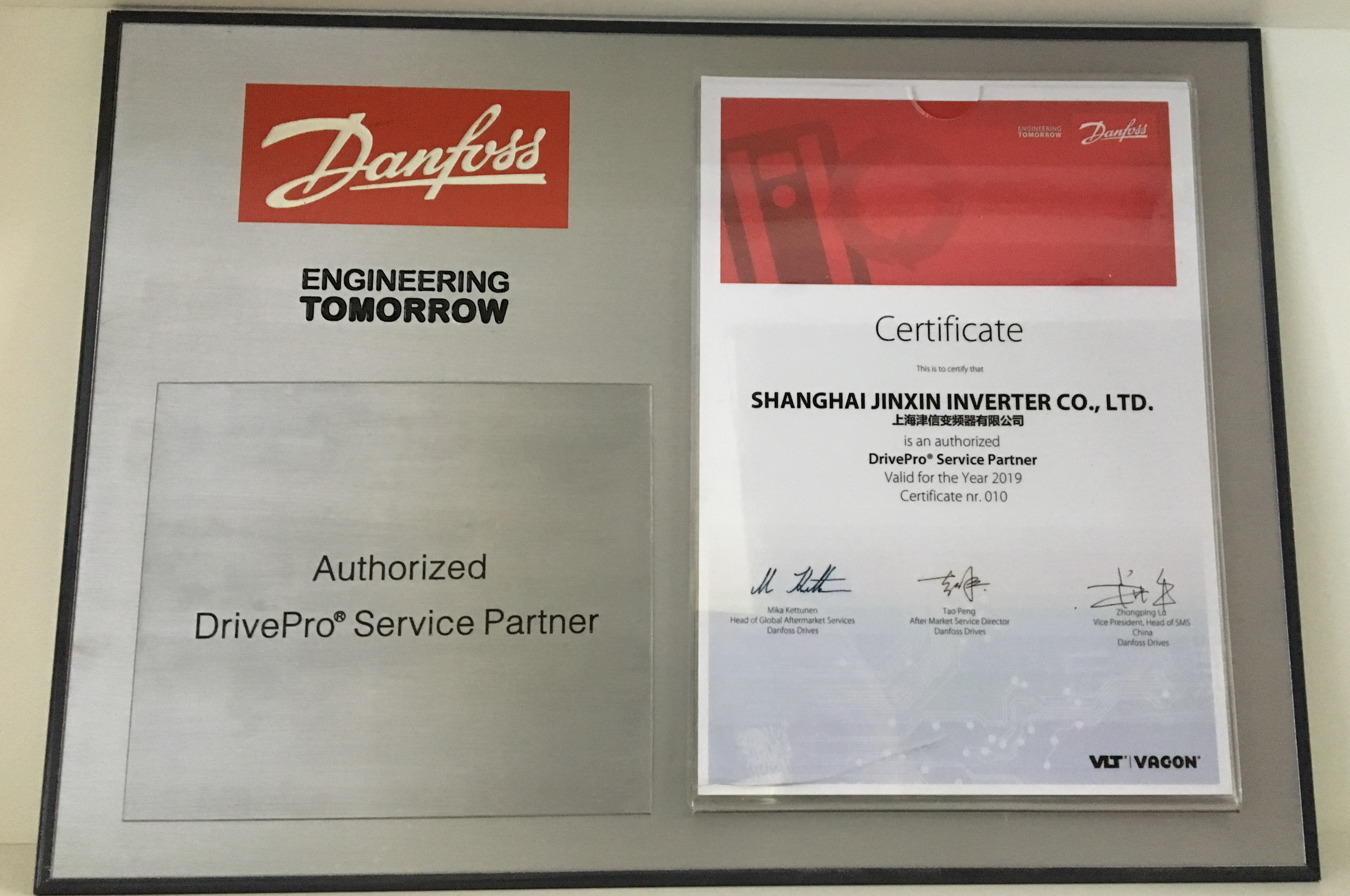 上海津信變頻器有限公司是丹佛斯傳動戰(zhàn)略合作經(jīng)銷商及授權DrivePro專業(yè)技術服務中心,匯川認證合作經(jīng)銷商,臺達變頻器/可編程序控制器一級代理及指定技術服務中心。自1998年成立至今,連年獲得丹佛斯優(yōu)秀技術獎和最佳銷售獎,中達電通最佳服務獎、上海市寶山區(qū)優(yōu)秀企業(yè)獎,各大工控網(wǎng)站、專業(yè)媒體頒布的最佳服務、市場創(chuàng)新獎等等。