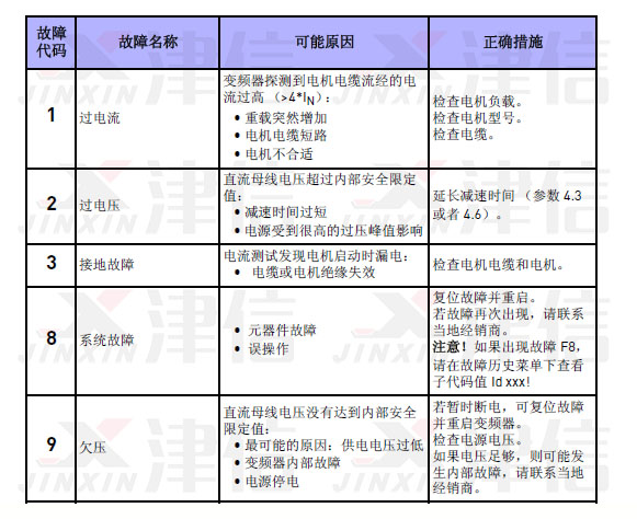 偉肯變頻器故障代碼1,2,3,4,5,6,7,8,9,10