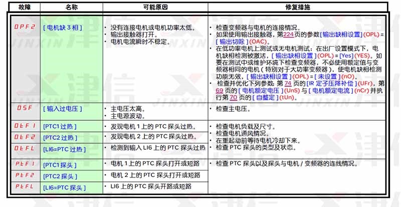 3、OPF2、OSF、OtF1、OtF2、OtFL、PHF、PtF1、PtF2、PtFL故障