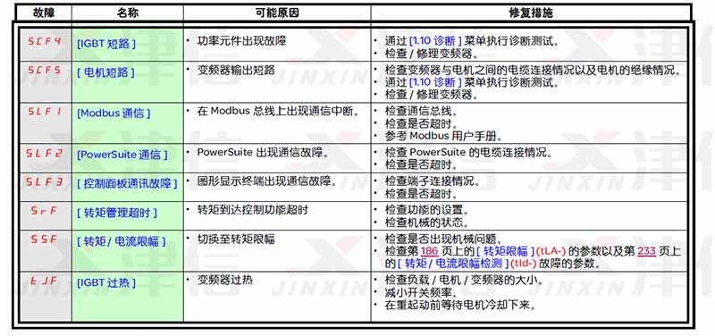 施耐德ATV71變頻器故障代碼和維修措施