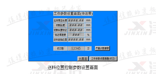 改造系統(tǒng)采用三臺(tái)Danfoss變頻器和兩塊MCO305,以及一個(gè)臺(tái)達(dá)HMI。系統(tǒng)采用RS485通訊。主機(jī)旋轉(zhuǎn)采用4kW變頻器直接拖動(dòng),通過(guò)HMI直接設(shè)定其運(yùn)行頻率。送料位置控制參數(shù)如下圖所示。這些參數(shù)在變頻器第19組參數(shù)開(kāi)放出來(lái),之所以采用HMI,主要是為了方便用戶進(jìn)行操作。